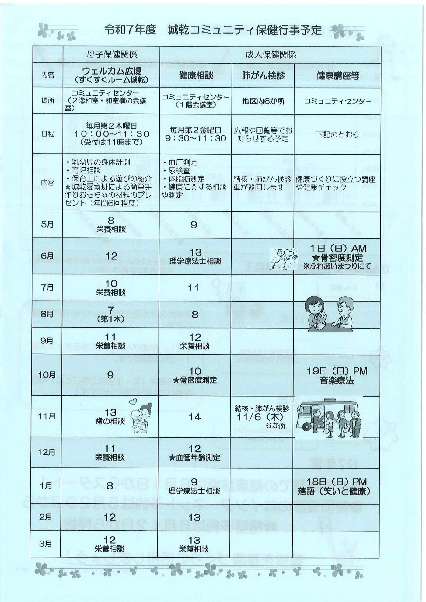 令和7年度 城乾コミュニティ保健行事予定