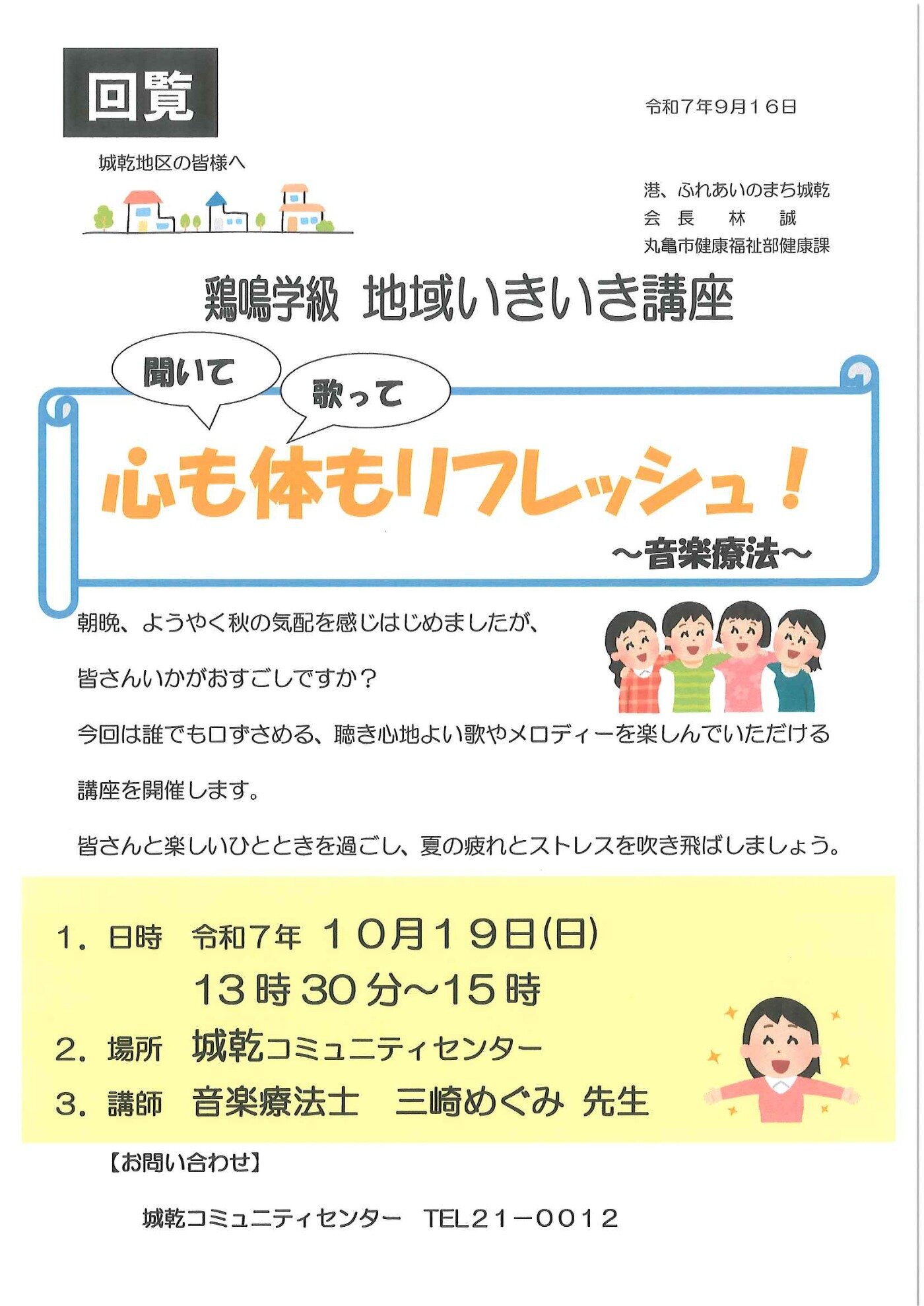 鶏鳴学級 地域いきき講座 音楽療法~心も体もリフレッシュ~