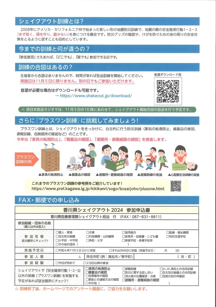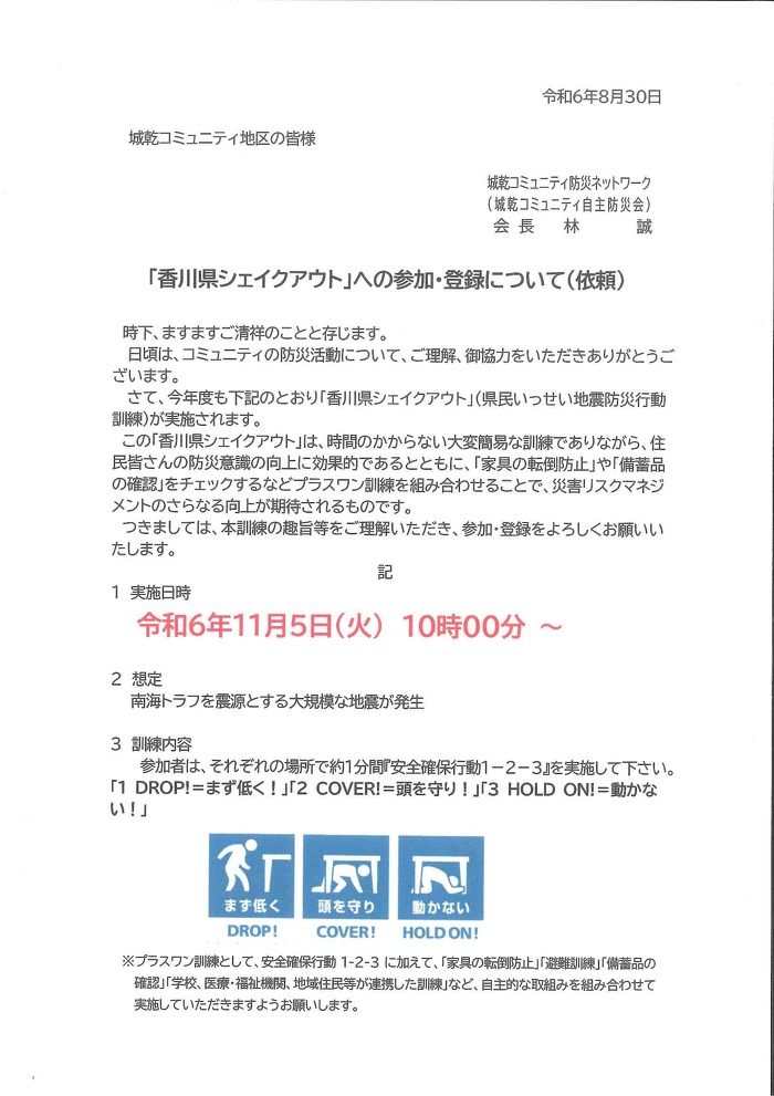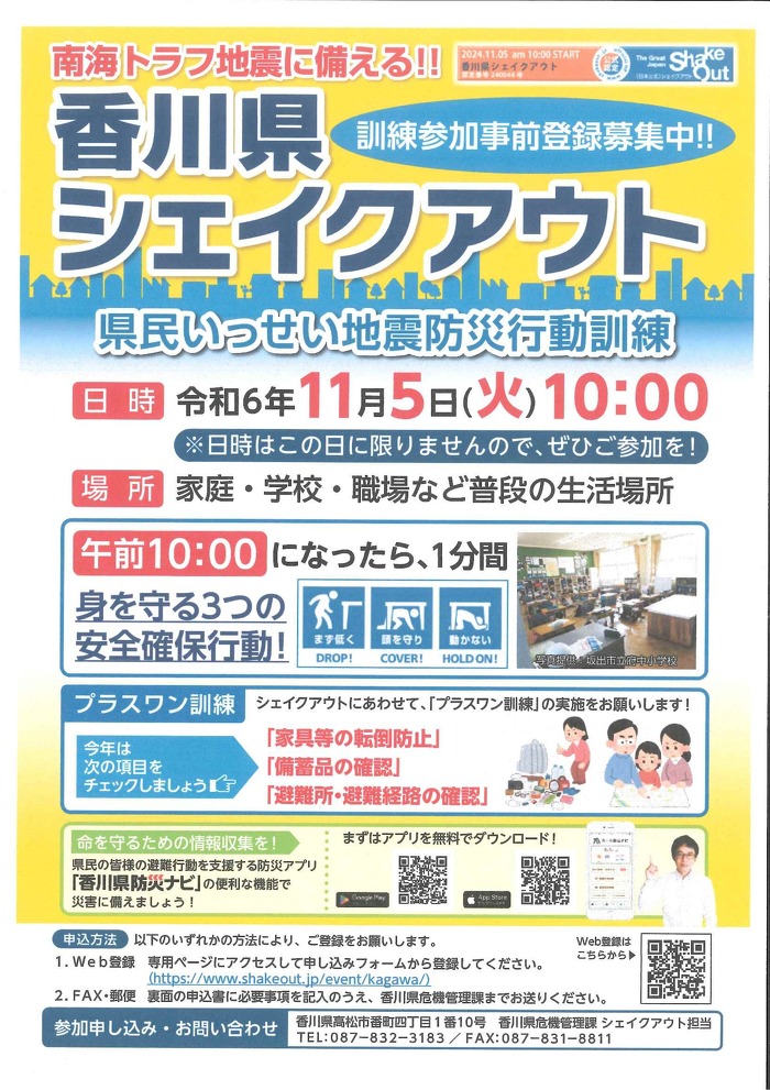 南海トラフ地震に備える!香川県シェイクアウト訓練参加のお願い
