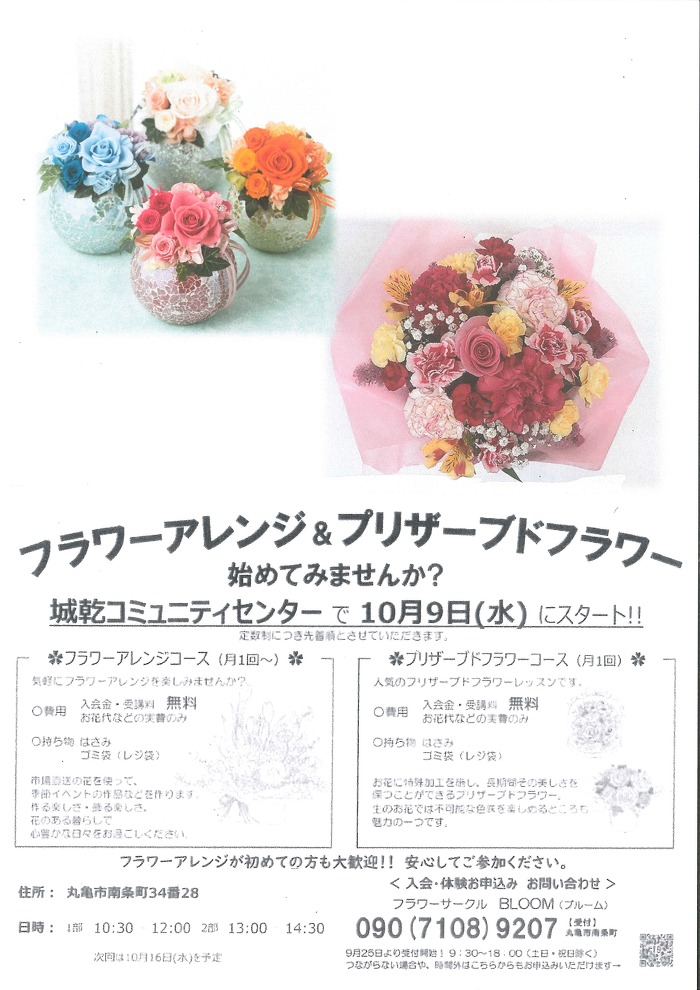 お花好き集合!フラワーアレンジメント&プリザーブドフラワー教室 始まります