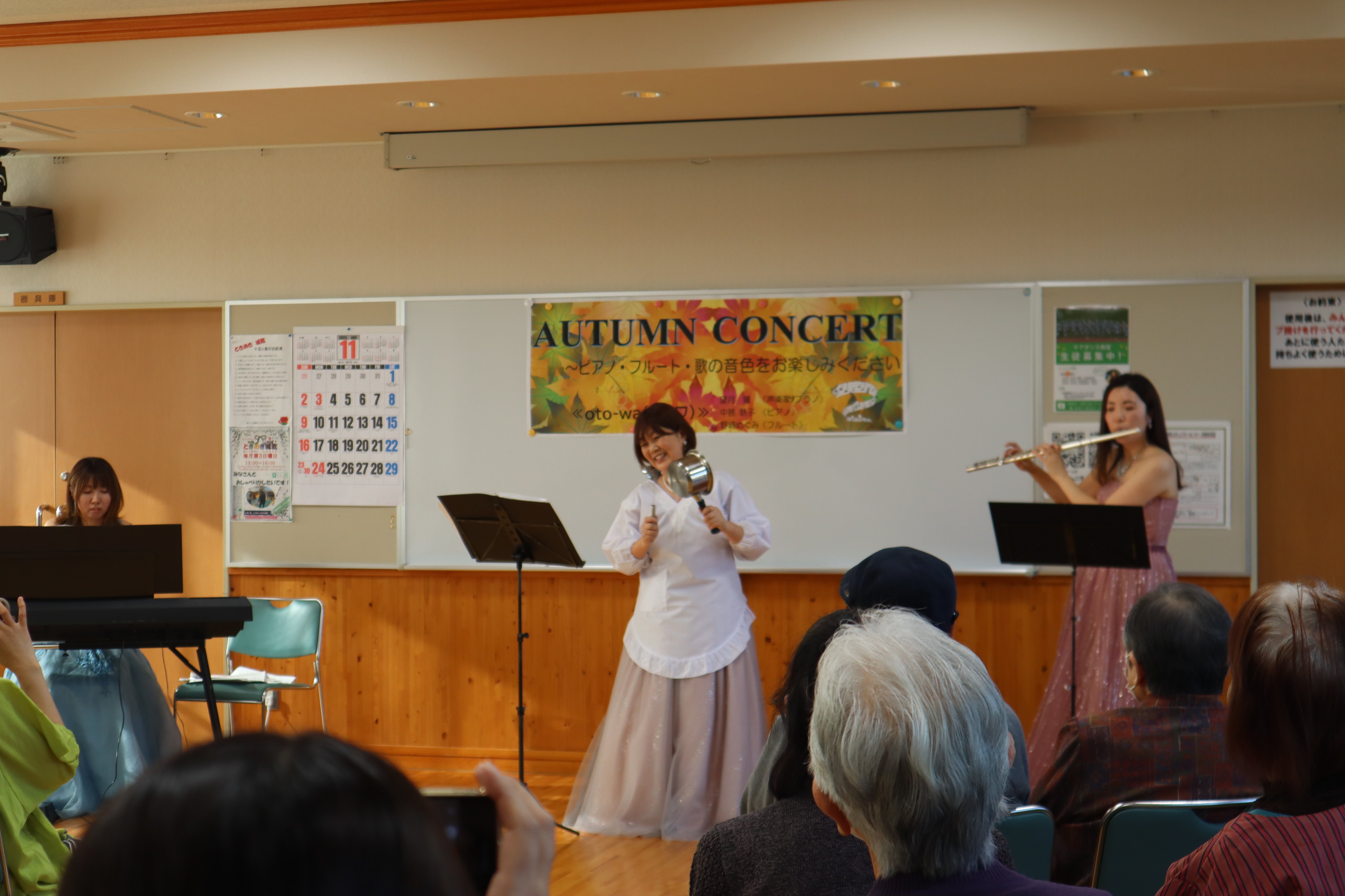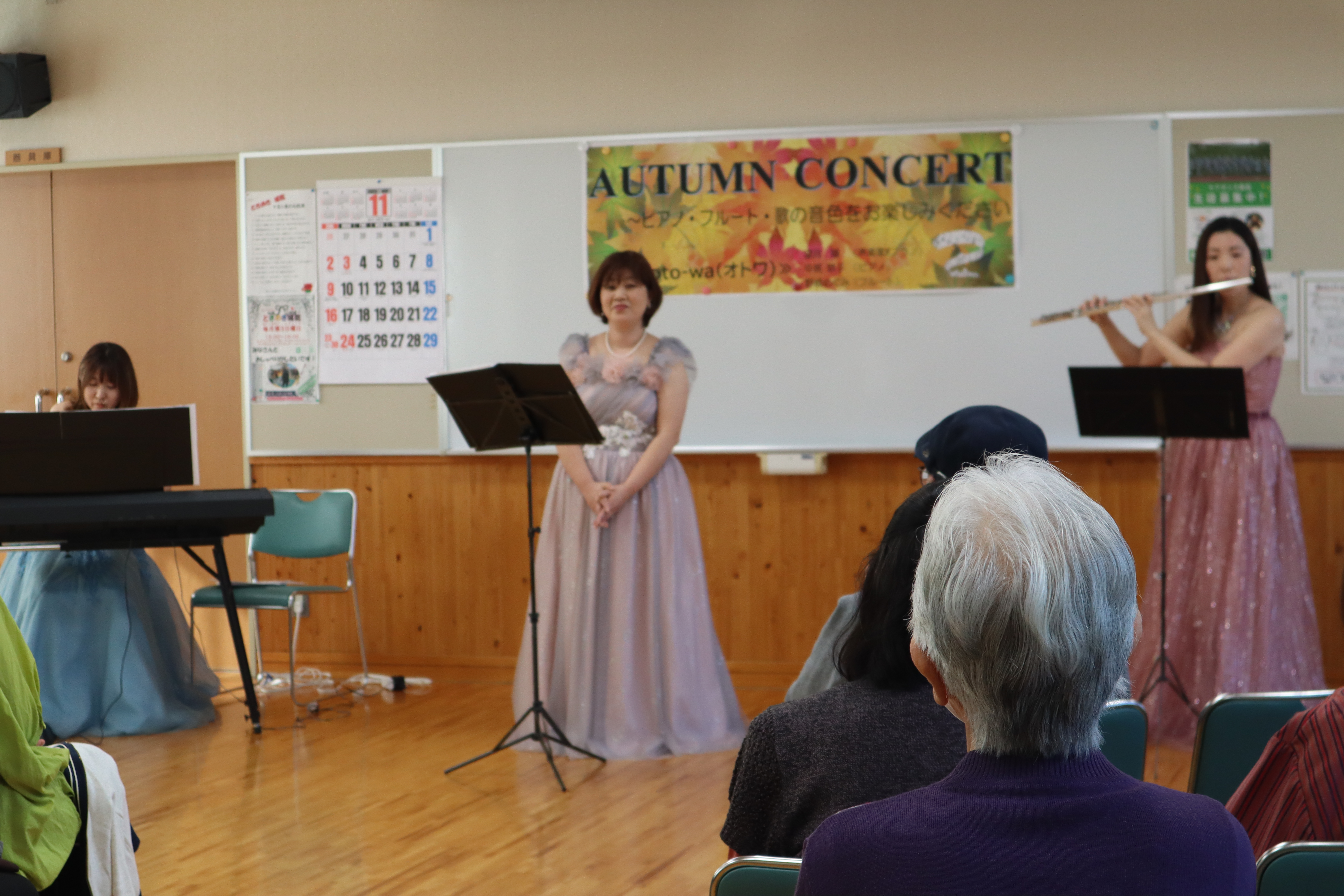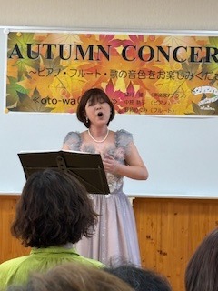 令和7年度城乾地区鶏鳴学級オータムコンサート 2025年11月16日(日) 沢山の人が来て下さったオータムコンサート! 素敵な歌声とピアノ・フルーートの音色で穏やかで心地良い時間を皆様と共有できました。最後にサザエさんを 会場のみんなで歌って楽しいひと時でした。 サザエさんの歌で盛り上がりました